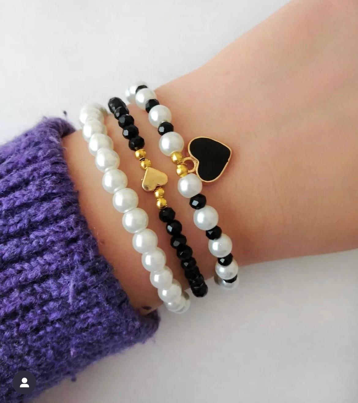 3lü Siyah Beyaz Boncuk Bileklik Set